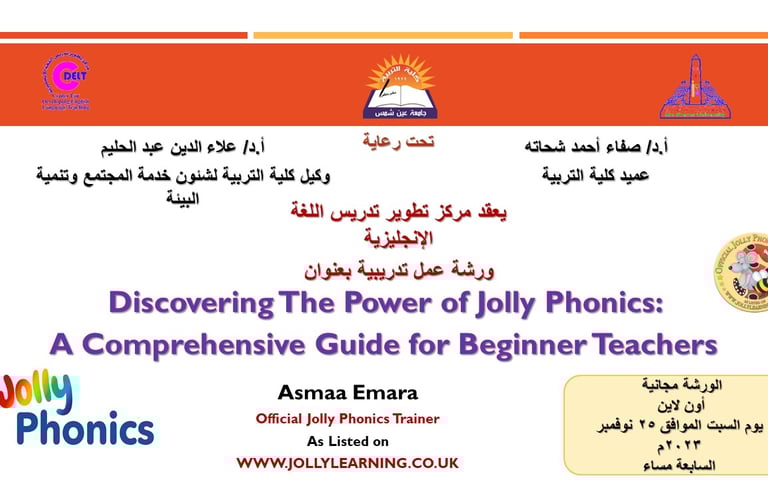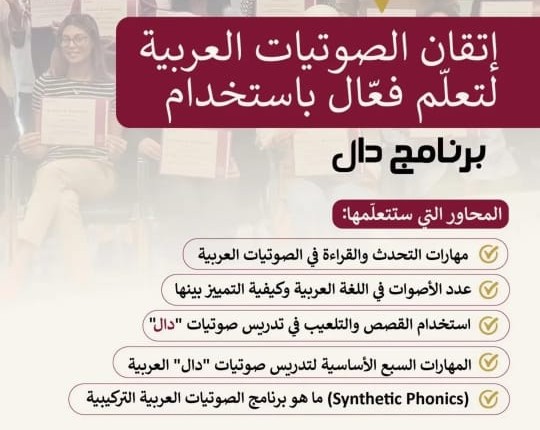 تدريب المعلمين والامهات والمهتمين برعاية الاطفال والمتخصصين على تعلم اللغة العربية بالطريقة الصوتية واستخدام استراتيجيات التعلم الفعال والأدوات التي تجعل التعلم أكثر متعة 2026